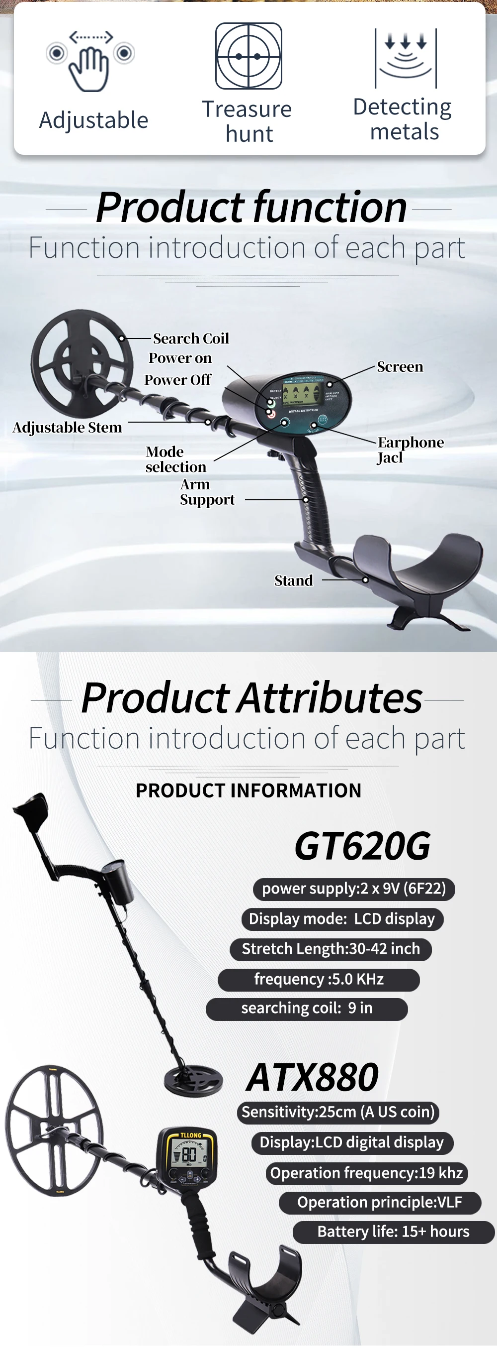 -17%Металошукач металевошукач GT620G Високочутливий Професійний металодетектор із рідкими кристалами
